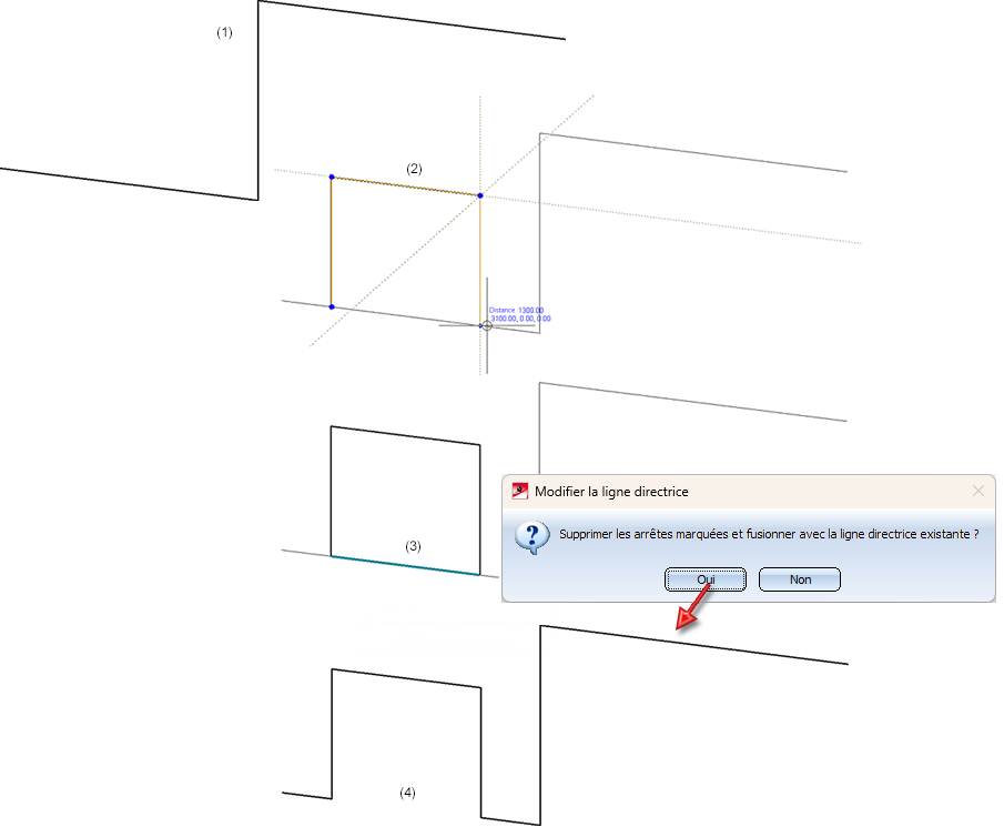 (1) Ligne directrice existante, (2) Nouvelle ligne directrice , (3) Confirmation par Oui, (4) Ligne directrice modifiée.
