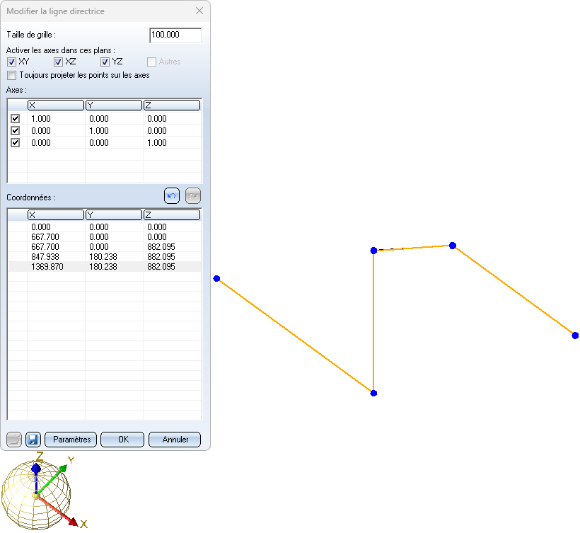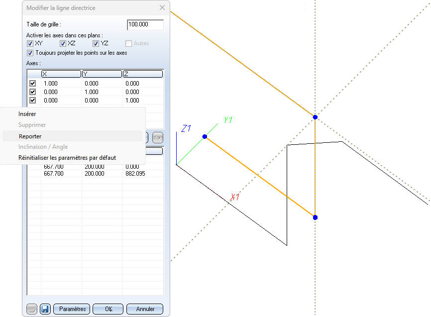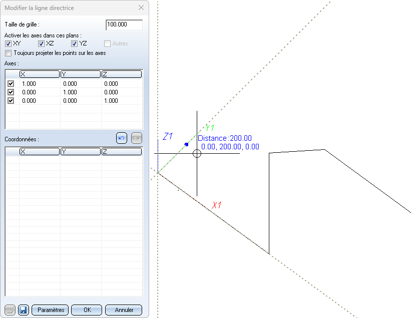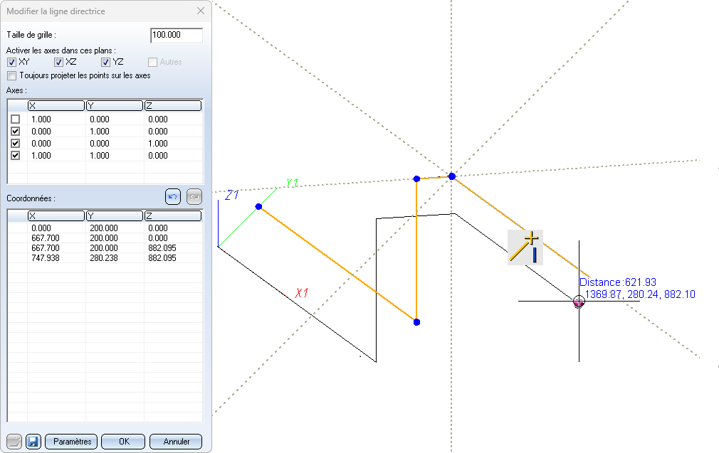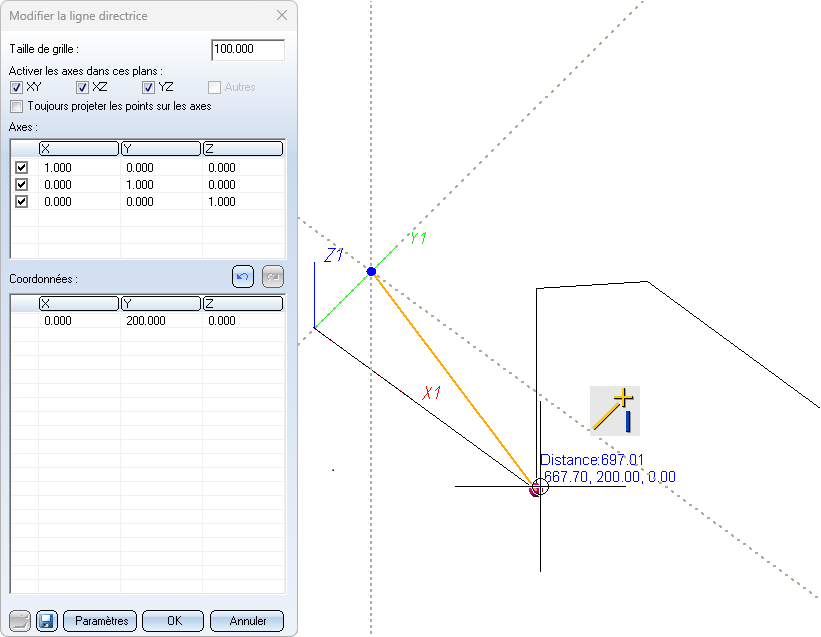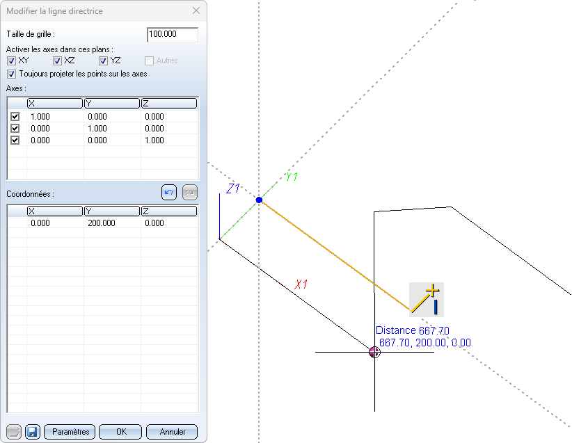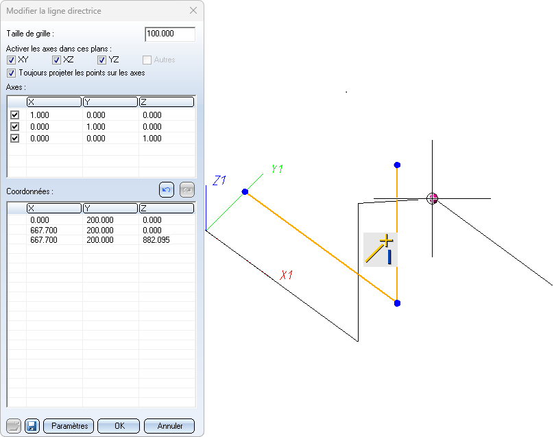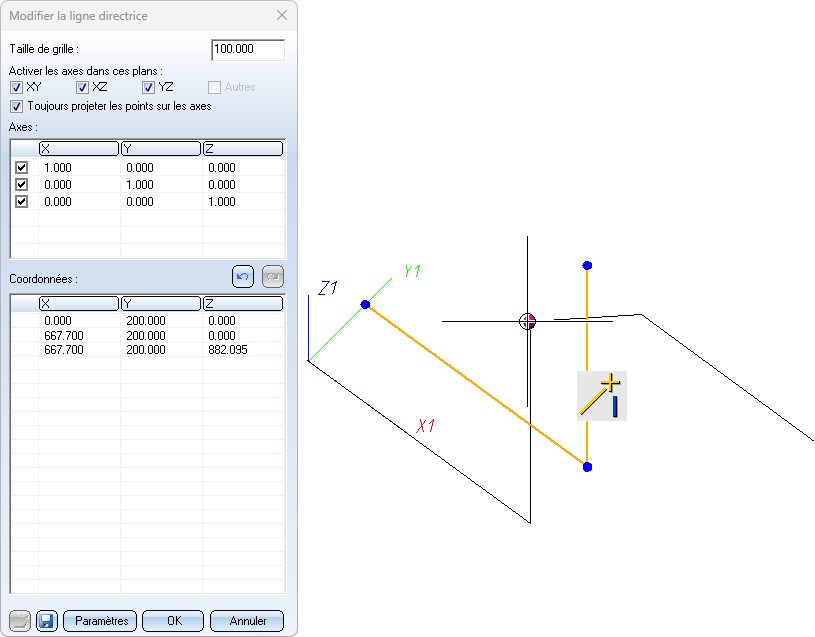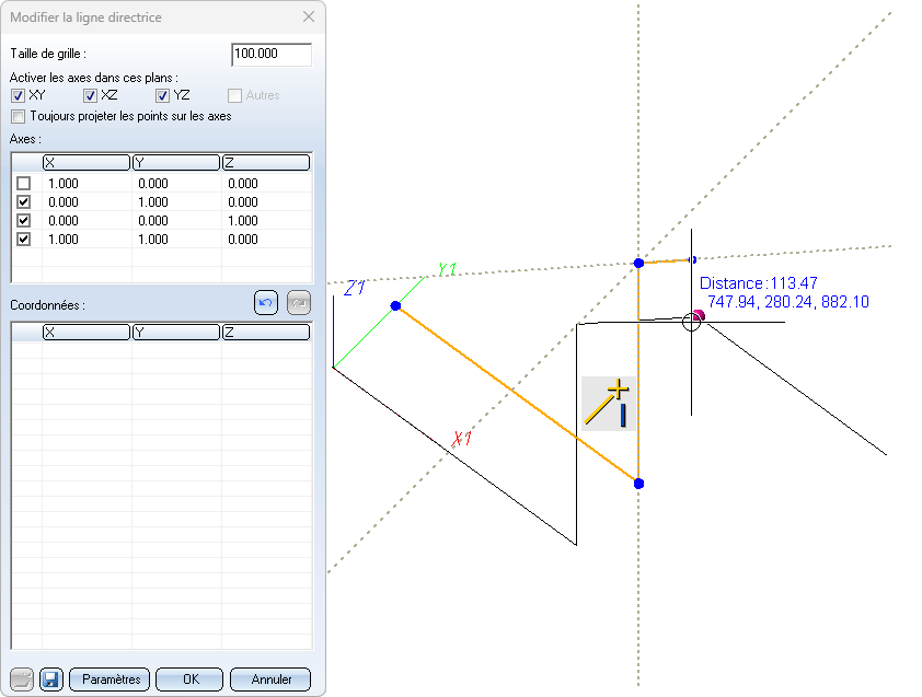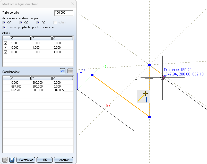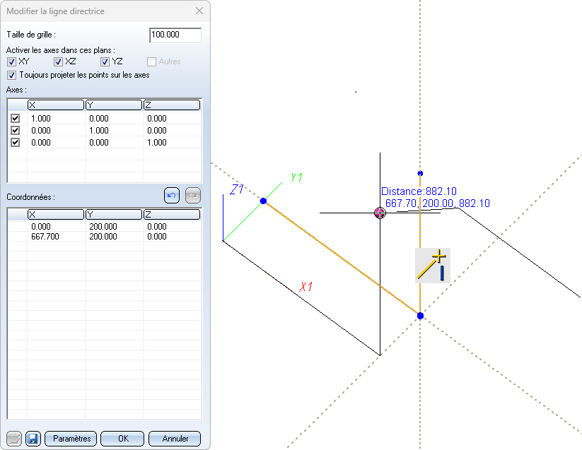 Nous cochons donc la case Toujours projeter les points sur l'axe. Cela nous permet de sélectionner le point de votre choix.