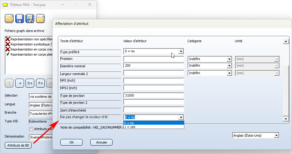 L'attribut peut être attribué aux éléments dans l'Éditeur de variantes et dans l'Éditeur PAA.