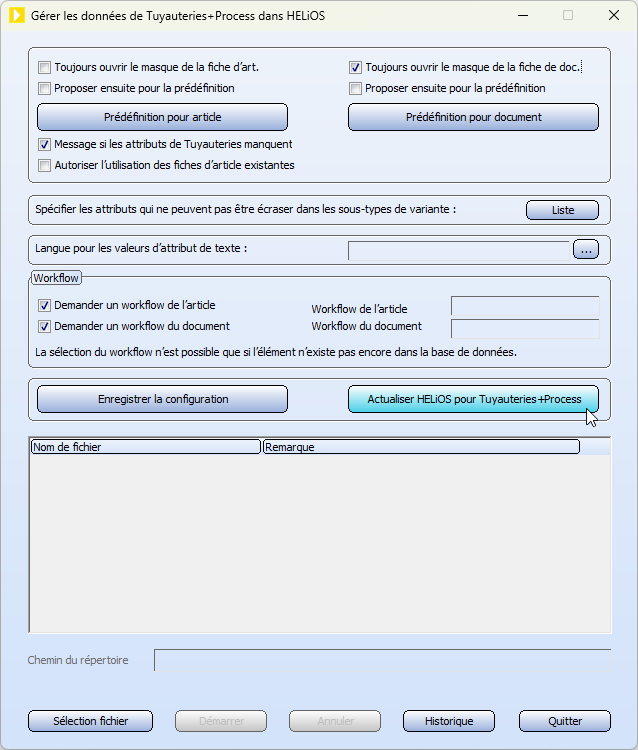 Pour que cet attribut soit disponible dans votre base de données HELiOS, vous devez tout d'abord actualiser HELiOS pour Tuyauteries+Process.