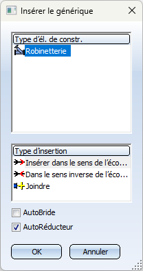 Cette fonction permet d'insérer des éléments génériques dans une tuyauterie. Actuellement, cela n'est possible que pour les robinetteries.
