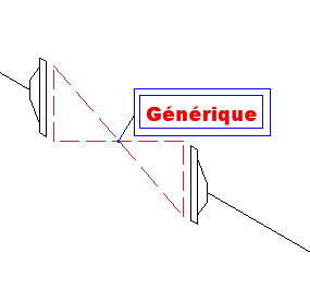 Dans l'isométrie, les robinetteries génériques sont représentées par des lignes pointillées rouges et ont une bulle de désignation avec le texte Générique.