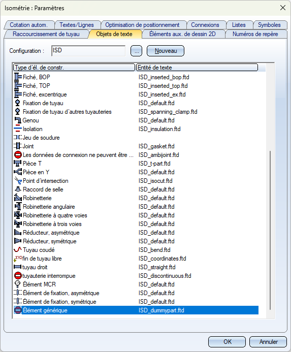La bulle de désignation peut être personnalisée si nécessaire dans les paramètres d'isométrie de l'onglet Objets de texte.