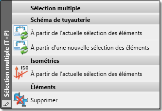 En outre, vous avez la possibilité de sélectionner plusieurs éléments ou tuyauteries sur la scène, puis d'activer le menu contextuel Sélection multiple en cliquant sur le bouton droit de la souris.