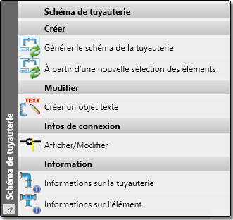 Ces fonctions sont également disponibles dans le menu contextuel Schéma de tuyauterie, que vous activez dans le schéma de tuyauterie en cliquant avec le bouton droit de la souris sur une tuyauterie. Cela permet de générer d'autres schémas de tuyauterie directement à partir du schéma de tuyauterie présent sur la scène.