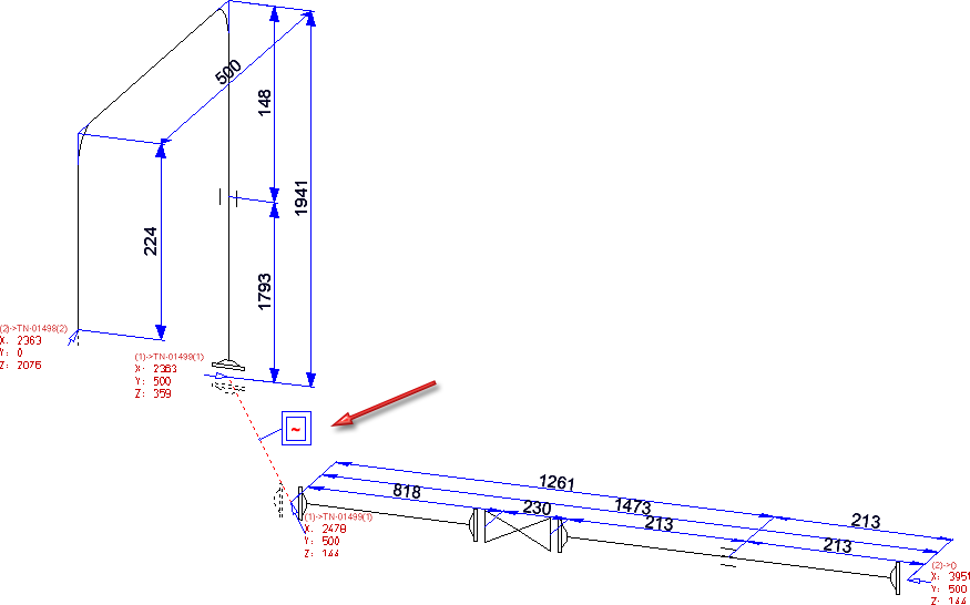 - La cotation est attribuée à la tuyauterie principale (ou, dans l'isométrie, à la copie de la tuyauterie principale).
