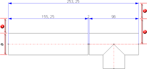 Pour éviter cela, HiCAD offre la possibilité de n'écrire que les chiffres de cote sur les arêtes correspondantes des triangles de pente au lieu des cotes de segment. Pour cela, cocher la case Définir la ligne de référence à l'aide du diamètre d'élément.