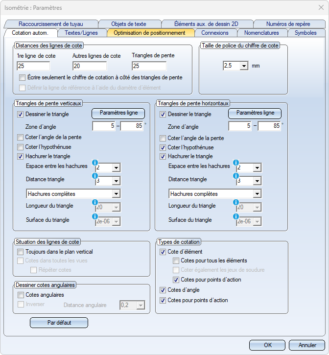 L'onglet Cotation automatique permet de définir le paramètre par défaut pour la cotation automatique.