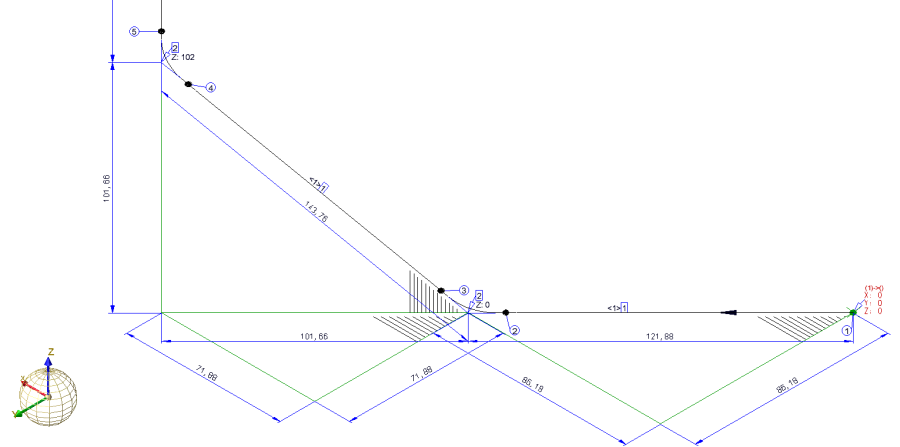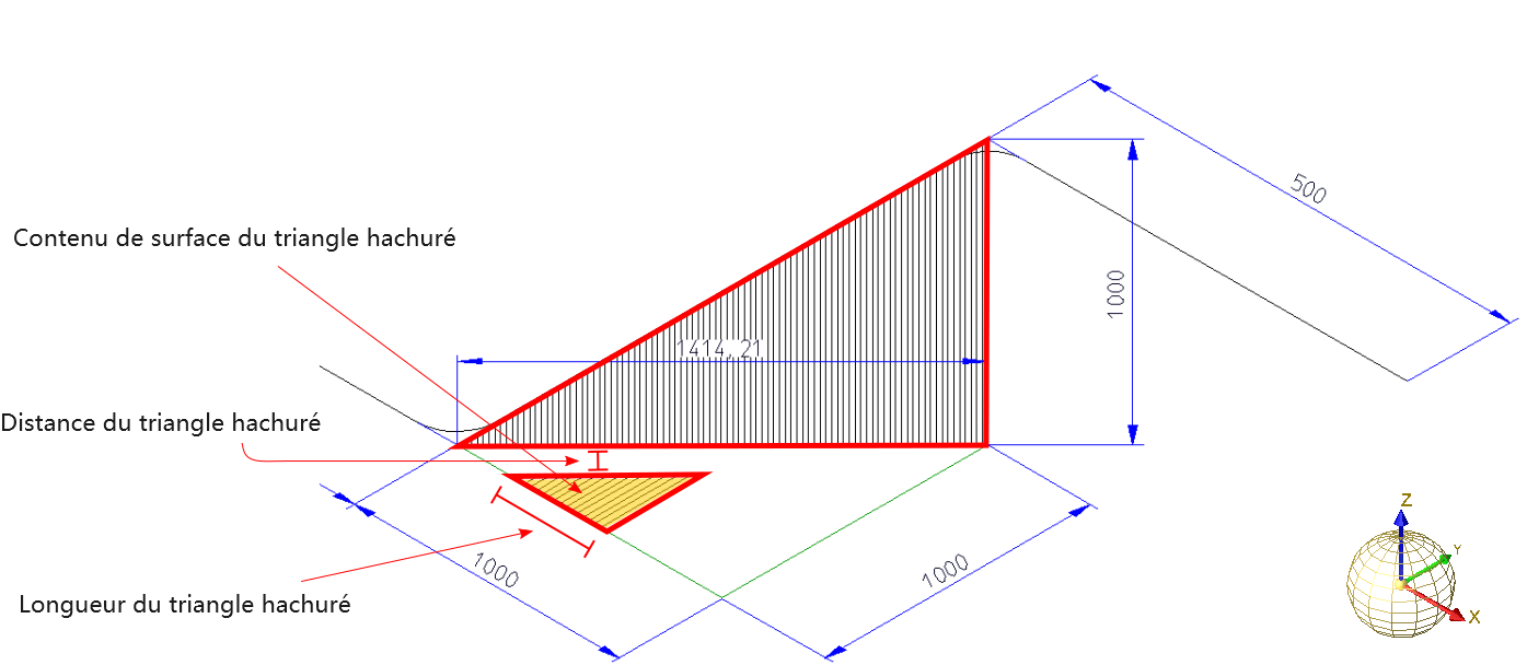 un triangle de pente horizontal dans le plan x,y pour indiquer le tracé latéral et