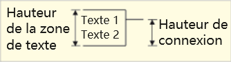 Si vous utilisez les paramètres de texte, vous pouvez en outre déterminer le facteur pour l'interligne (facteur x hauteur de texte) et la hauteur de connexion (en % de la hauteur de la zone de texte).