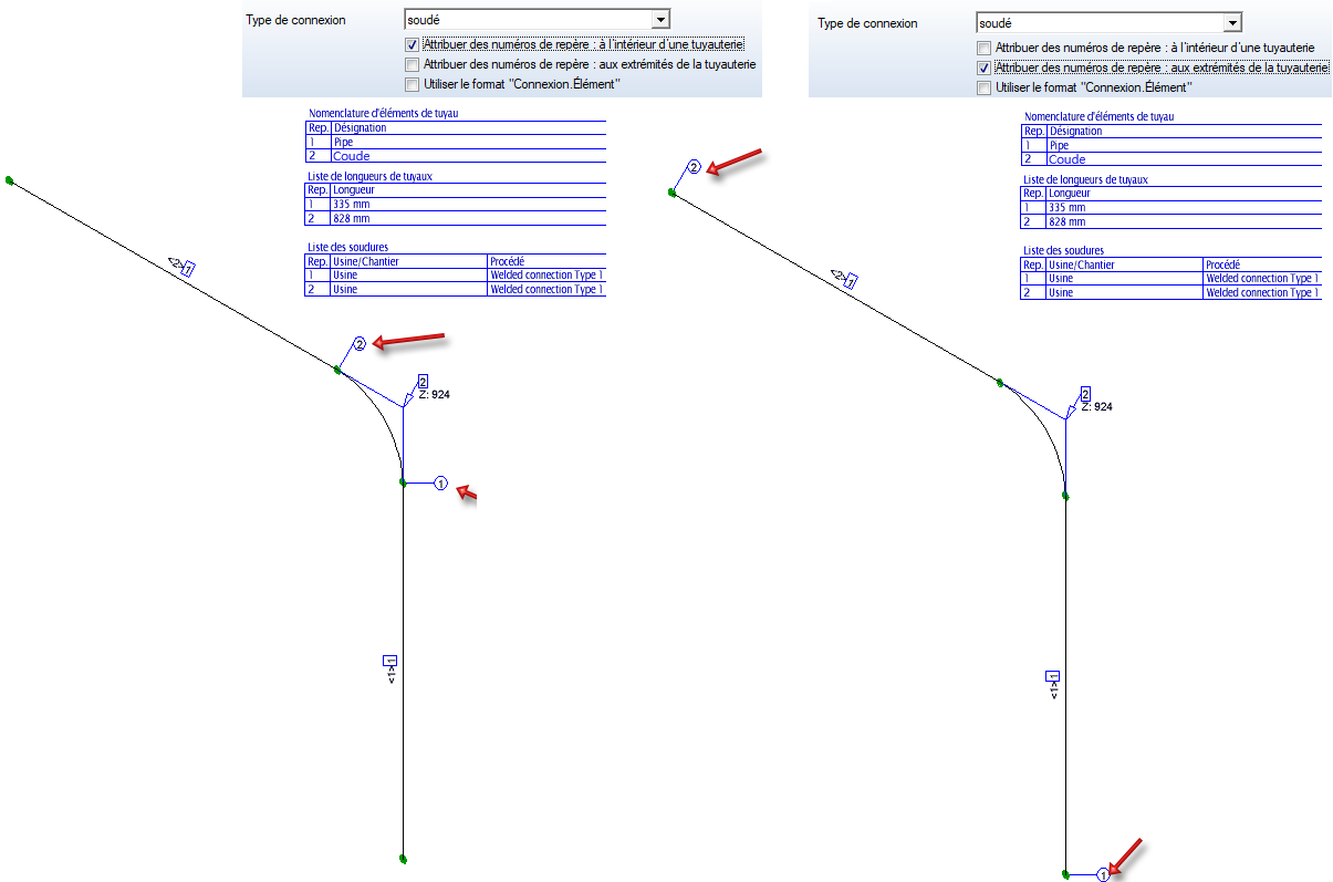Notez que ce paramétrage est défini par type de connexion. Vous pouvez donc par exemple repérer les raccords soudés de cette manière et les connexions soudées au manchon selon le schéma précédent.