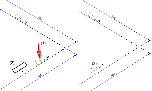 Cette fonction vous permet d'insérer manuellement un symbole d'inclinaison dans l'isométrie de la tuyauterie.