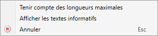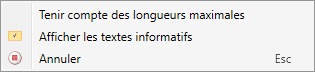 Si vous trouvez que les textes d'indication sont gênants, par exemple parce qu'ils recouvrent éventuellement les marquages de points, vous pouvez désactiver les textes en désactivant cette option. En exécutant à nouveau le menu contextuel, l'option peut à nouveau être cochée / désactivée :