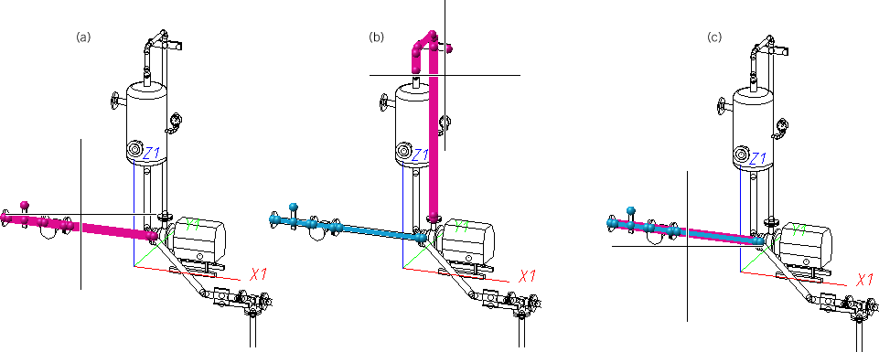 Cette fonction vous permet de déplacer une tuyauterie complète. Cela signifie que vous pouvez modifier à la fois la position et l'orientation de l'élément concerné, c'est-à-dire ici la tuyauterie. |
