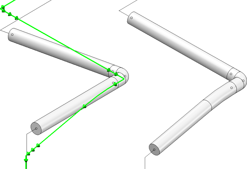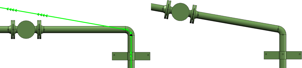 Il arrive que l'angle d'un coude change d'une manière qui nécessite son remplacement par un autre élément. Par exemple, dans la figure ci-dessous, un coude dont l'angle dépasse 90° est créé :