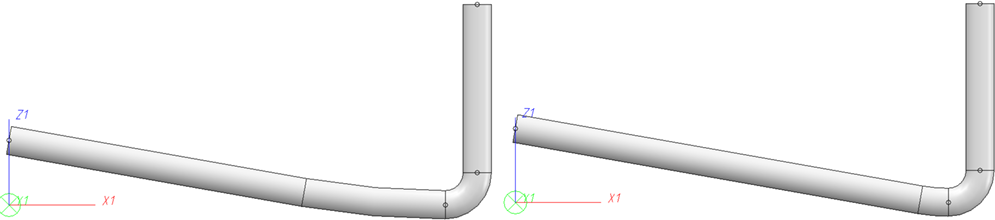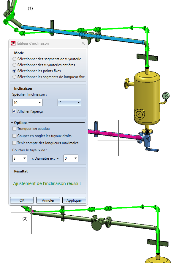 Si la case est décochée, les segments droits de la tuyauterie seront coudés afin d'obtenir l'inclinaison souhaitée :