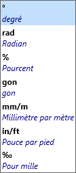 Dans cet encart de la fenêtre, vous définissez l'inclinaison à assigner aux segments de la tuyauterie sélectionnés. Elle peut être indiquée
