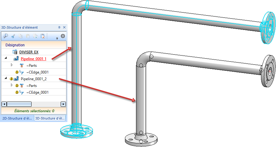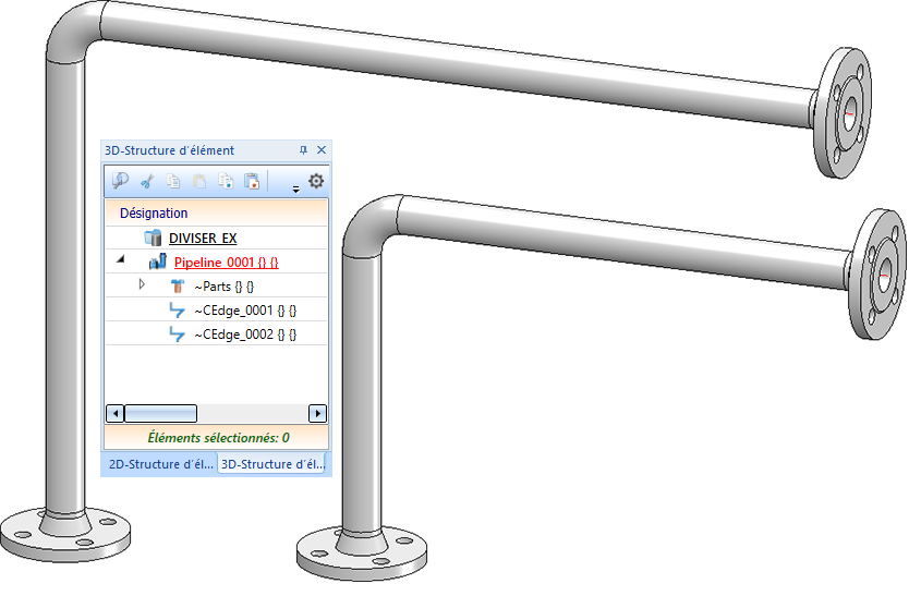 - Une division de la tuyauterie est également possible en cas d'éléments "mixtes" (en partie avec, en partie sans corps symbolique).