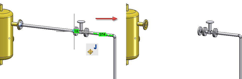 , vous obtiendrez la modification souhaitée. Dans l'illustration ci-dessous, le point final de la tuyauterie gauche a été sélectionné comme point isolé.
