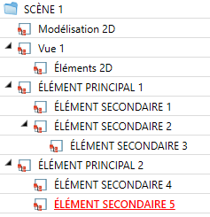 Les scènes 2D sont toujours des scènes d'éléments individuels, puisqu'il n'y existe aucun ensemble et ensemble principal avec un identifiant d'ensemble explicite.
