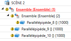 La scène comprend un ensemble avec trois éléments identiques dont un appartient à un ensemble subordonné.