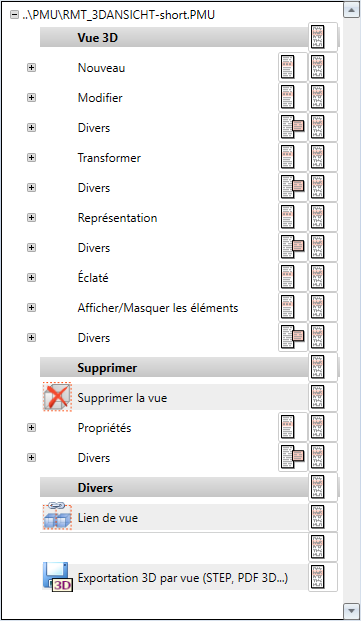 Vous voyez listées ici les entrées du menu contextuel dans une structure arborescente.
