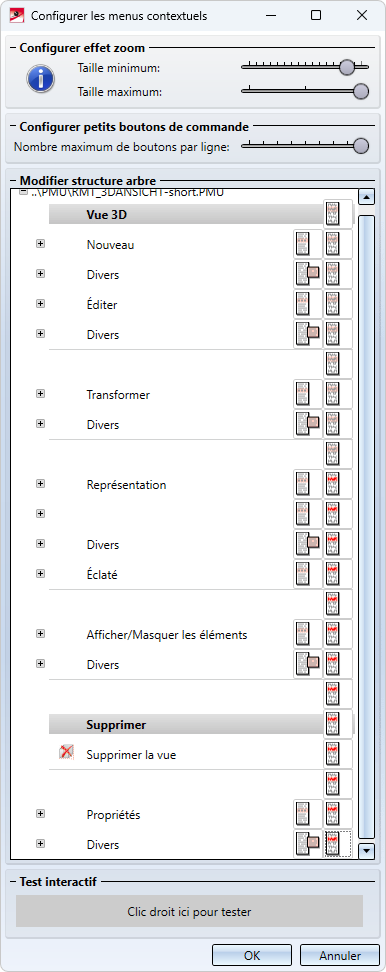 En quittant la fenêtre de dialogue par OK, les paramètres choisis seront appliqués au menu contextuel.