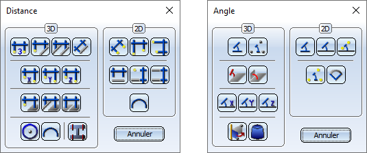 Récupérer des distances ou des angles de la scène est possible à partir des menus Distance et Angle. Les fonctions de ces menus correspondent aux fonctions portant le même nom de l'onglet Information. En supplément, vous disposez à partir de la fenêtre Distances 3D de la fonction 3D Lignes de trusquinage qui vous permet de reprendre la distance des lignes de trusquinage d'un profilé de la Structure métallique.