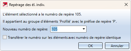 Cette fonction permet d'attribuer manuellement un numéro de repère aux éléments individuels.