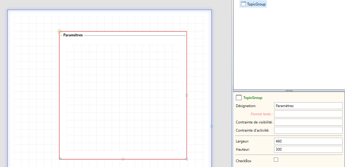 - Si un objet GUI de type TopicGroup est déplacé, ce sont alors tous les objets appartenant au TopicGroup/TabControl qui seront déplacés.