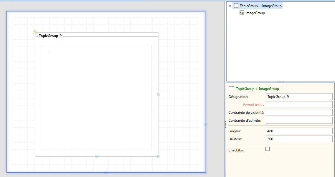 Un cas particulier peut survenir avec l'objet de la Toolbox TopicGroup + Image Group. Cet objet de la boîte à outils (Toolbox) définit un TopicGroup, soit une zone sans bordure du dialogue utilisateur et insère parallèlement un objet de type ImageGroup.