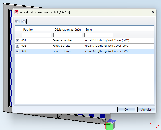 Sélection multiple de positions lors de l'importation de LogiKal vers HiCAD
