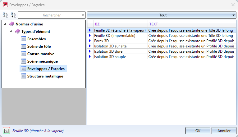 Une optimisation du comportement de l'interaction HiCAD/LogiKal concerne la fonction Enveloppes de bâtiment > Nouveau > Esquisse (Façade/Remplissage avec esquisse)