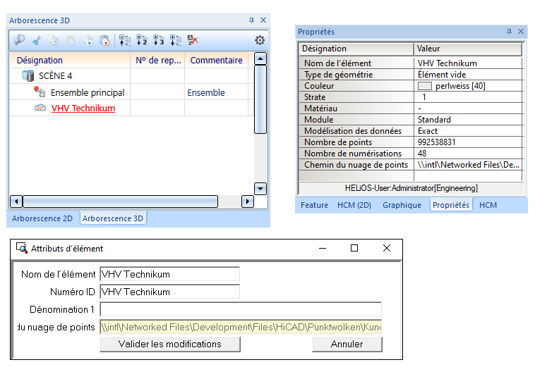 Les nuages de points peuvent uniquement être ajoutés dans une scène déjà existante. Avant d’importer un nuage de points, vous devez donc charger une scène HiCAD existante ou en créer une nouvelle.
