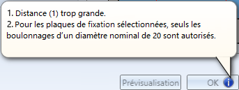 au niveau du bouton OK. En déplaçant votre curseur au-dessus du symbole, une info-bulle indique les problèmes rencontrés, par exemple :