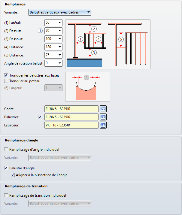 - Tous les paramètres appliqués dans la fenêtre de dialogue du configurateur de garde-corps seront affichés par défaut à la prochaine utilisation de la macro.