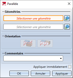 En guise de Géométries, identifiez deux éléments géométriques devant se retrouver parallèle.