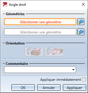 Par la saisie d'une contrainte Perpendicularité, vous pouvez forcer deux géométries à être en angle droit.