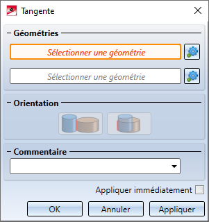 Vous pouvez également modifier cette orientation dans le champ Orientation de la fenêtre de dialogue Tangente ou encore au moyen de la fonction Inverser l'orientation