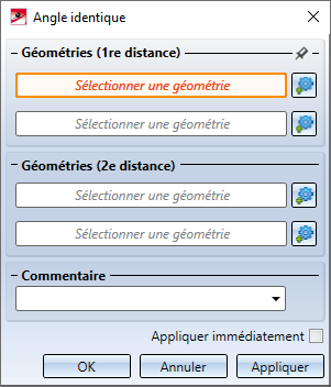 La fenêtre de dialogue Angle identique s'ouvre une fois la fonction lancée.