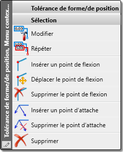 Pour les tolérances de forme/de position qui ont été créées avant HiCAD 2023 SP2, l'ancien menu contextuel est toujours disponible.