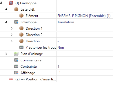 Les enveloppes sont des solides et, comme tous les autres éléments, peuvent être référencés et être pertinent pour la nomenclature. Vous disposez donc des cases correspondant à ces actions.