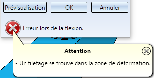 apparaîtra alors sur le bouton OK. - La zone concernée par l'incurvation ne doit pas comporter de douilles filetées ni d'usinages normés. Si c'est le cas, un message correspondant s'affiche.