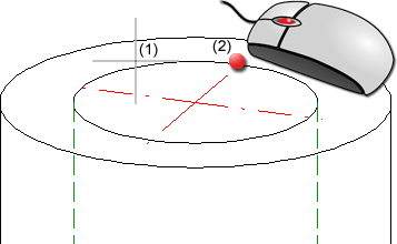 - détermination d'un point initial du système d'axe (pour la taille). En cliquant sur le bouton du milieu de la souris, il est possible de laisser HiCAD appliquer le point proposé, par exemple le 1er point quadrant du cercle.