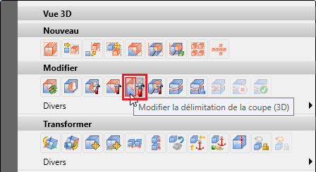 Modifier la délimitation de la coupe Cette fonction permet de modifier directement l'esquisse utilisée pour la délimitation des vues en coupe. Après avoir exécuté la fonction, vous pouvez modifier l'esquisse à votre convenance. Un clic sur Accepter l'esquisse permet d'appliquer la modification sur la scène. Vous trouverez la fonction également dans le menu contextuel des vues.