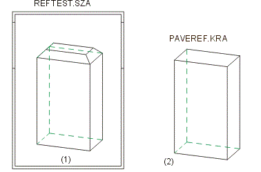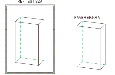 Une nouvelle scène, par ex. REFTEST, est créée. Sur cette scène, un parallélépipède est directement référencé lors de sa génération et enregistré sous le nom PAVEREF.KRA.