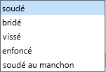 Sélectionnez le type de jonction requis dans une liste de choix.