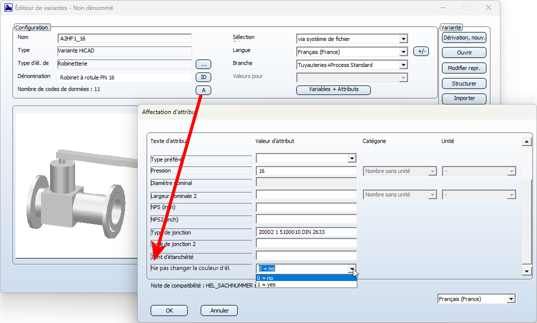 L'attribut peut être attribué aux éléments dans l'Éditeur de variantes et dans l'Éditeur PAA.