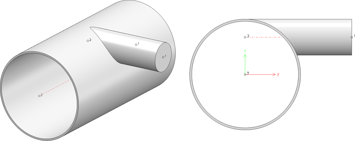 Cette fonction est nécessaire pour les tuyaux insérés de manière excentrique et peut être sélectionnée dans le menu contextuel des jonctions de composants.