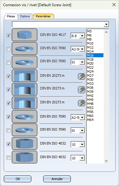 Vous devez également sélectionner un diamètre de boulon correspondant (ici : M16), car il ne sera pas déterminé automatiquement !